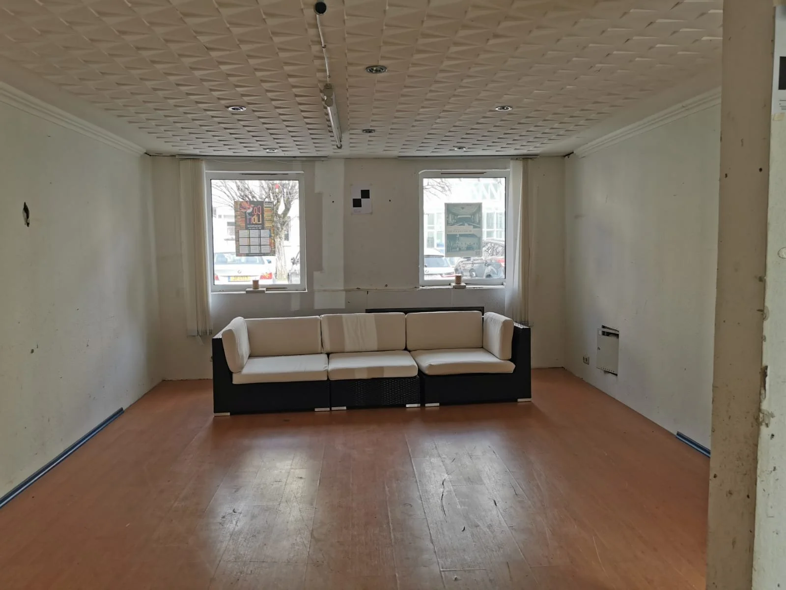 Einbau einer Bar im Eingangsbereich, Reinigung des Saals und Fertigstellung der Sanitäranlagen.